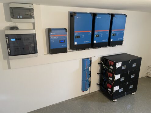 Die bestehende PV-Anlage mit zwei Fronius Symo 15 kW Wechselrichtern wurde um ein leistungsstarkes Victron Energy Batteriespeichersystem erweitert. Das neue System bietet 30 kVA Leistung und 48 kWh Speicherkapazität, ergänzt durch einen Victron MPPT 450/100 Laderegler für maximale Effizienz.