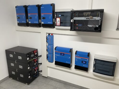 Die installierte Anlage basiert auf einem dreiphasigen Victron Energy System mit 15kVA Anschlussleistung und einem 12,5 kVA SolarEdge Wechselrichter. Für eine effiziente Ladung sorgt zusätzlich noch ein MPPT-Laderegler vom Victron Energy. Zudem wurde auch ein einphasiger Notstromaggregatanschluss integriert, um die Versorgungssicherheit auch bei Stromausfällen zu gewährleisten.